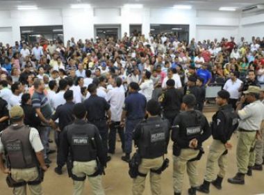 Uma audiência pública para apresentação da proposta de doação de sete hectares do terreno pertencente ao Parque de Exposições de Barreiras para a construção de um shopping center e um hotel acabou em tumulto na noite desta segunda-feira (17). De acordo com o Jornal Nova Fronteira, os barreirenses estão divididos e, por conta disso, o encontro, na Câmara de Vereadores, exaltou os ânimos dos prós e contras ao projeto. Ainda segundo o site, durante a audiência houve trocas de empurrões, xingamentos e até socos. Até a prefeita Jusmari Oliveira (PSD) foi alvo dos contrários à entrega do espaço. Três ovos foram arremessados na direção da gestora, mas o alvo não foi atingido. Os seus assessores, que participavam do empurra-empurra, foram as vítimas. Por conta da confusão, 20 policiais militares e alguns agentes civis, além da guarda municipal, precisaram ser acionados para conter os exaltados. Manifestantes chegaram a jogar um pedaço de arame na rede elétrica, o que gerou curto circuito. Com a queda de energia, ficou impossível continuar as discussões no Legislativo municipal. Uma nova audiência foi marcada para esta quarta-feira (19), às 16h, na Câmara. Ainda segundo o portal, os 11 edis deverão aprovar, na íntegra, o projeto de doação da área. Mas, opositores prometem entrar com uma ação popular para impedir que parte do Parque de Exposição Geraldo Rocha seja doado.
