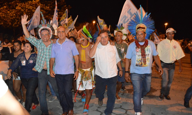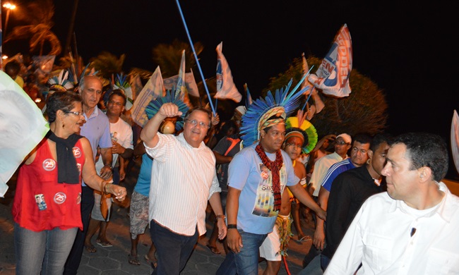 A comitiva chegou ao município de Belmonte por volta das 13h e as 19h foram recepcionados por lideranças políticas e povos indianas, na cidade de Coroa Vermelha. De lá a caravana seguiu para o Bairro Baianão, em Perto Seguro, onde participou de comício.